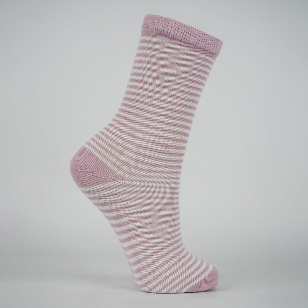 Girls' Pink & White Striped Crew Socks