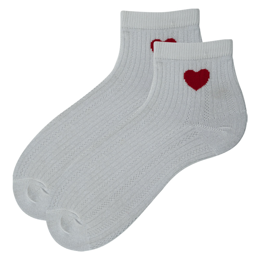 Women White Ankle Socks with Red Heart